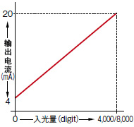 可對入光量的數值輸出4~20mA的模擬電流,因此