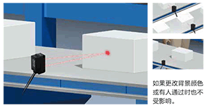 特殊光學透鏡設計,受工件顏色影響較小;即便在異色工件流通的產線上也可穩定檢測。