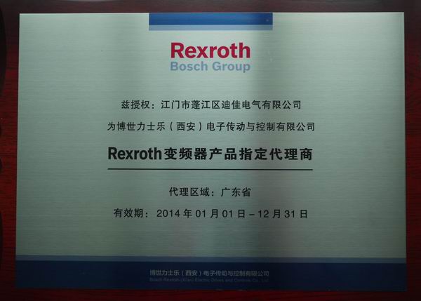 茲授權(quán):江門市蓬江區(qū)迪佳電氣有限公司為博世力士樂(西安)電子傳動與控制優(yōu)先公司Rexroth變頻器產(chǎn)品指定代理商